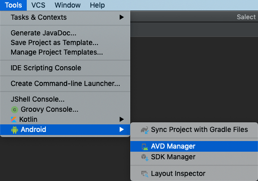 Open Intellij IDEA/Android Studio and allow the Gradle build to complete. The Android tools options (main menu -> Tools -> Android) will not be available until a successful build has been completed.